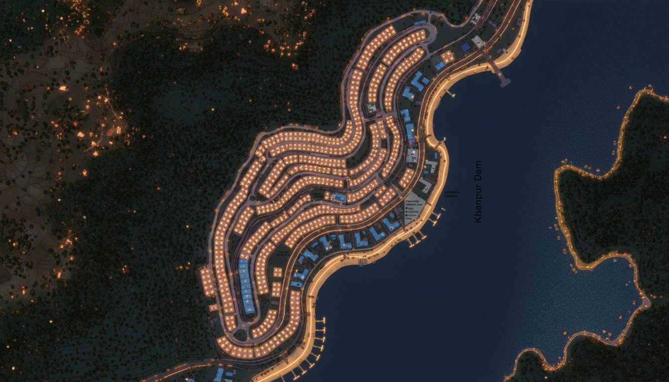 The Master Plan of Jabal Resorts & Residencia is thoughtfully designed to provide a complete lifestyle within a secure and serene community. Spanning over 100+ Kanal, the project features smart resorts, residential plots, wide roads, lush green spaces, and direct water access.
